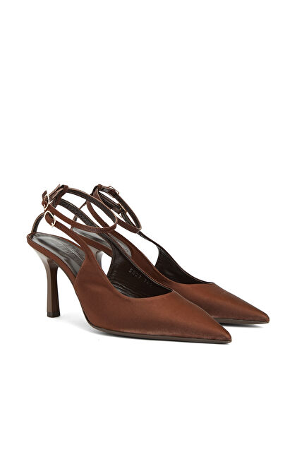 Kahverengi Deri Topuklu Ayakkabı