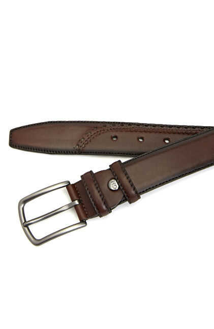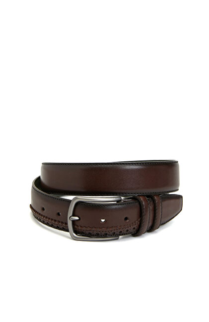 Kahverengi Erkek Baskılı Deri Kemer