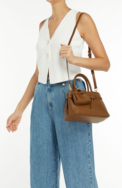 Kahverengi Kadın Deri Bucket Çanta