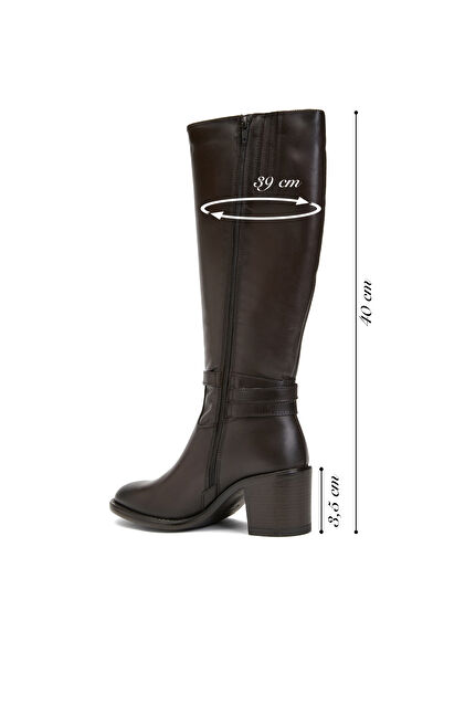 Fermuarlı; Kauçuk Tabanlı; Deri Çizme; Topuk: 4 cm; Konç Genişliği:39 cm; Çizme Uzunluğu Topuk Boyu Dahil:40 cm,