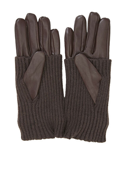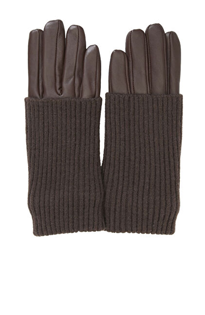 Kahverengi Kadın Deri Karışımlı Eldiven
