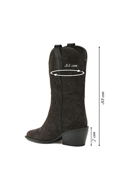 Küt Burun; Düz Renk; Süet Çizme; Topuk Boyu:7 cm; Baldır Genişliği: 35 cm;Hayvansal Kökenli Tekstil Dışı Parçalar İçerir;Baldır Genişliğinde 39 Beden Referans Alınmıştır.Diğer bedenlerde +/- 3 cm fark göstermektedir.,