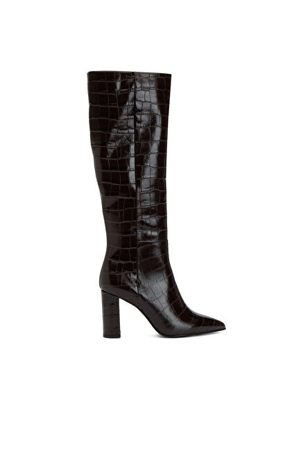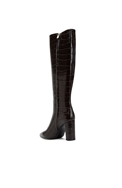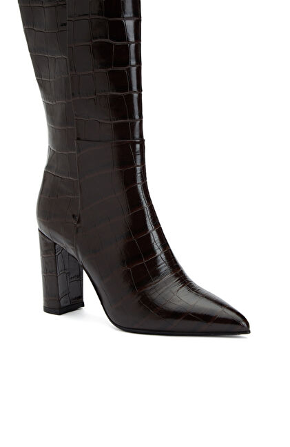 Kahverengi Kroko Desenli Kadın Deri Çizme