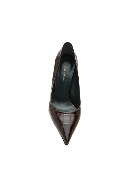 GEORGE HOGG SMART Kahverengi Kroko Desenli Kadın Deri Topuklu Ayakkabı