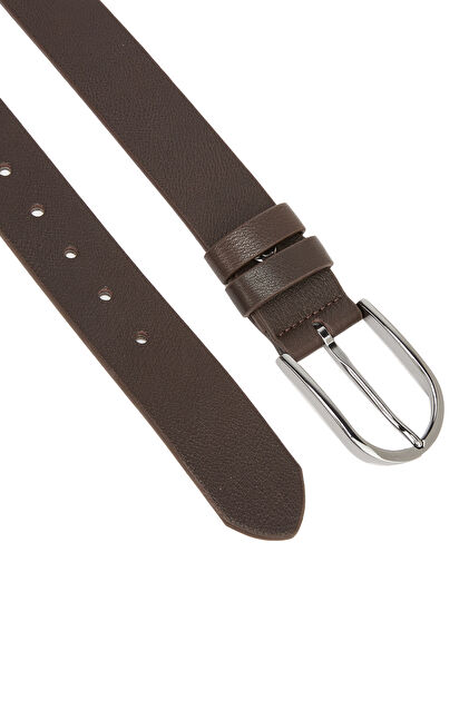 Kahverengi Oval Tokalı Erkek Deri Kemer