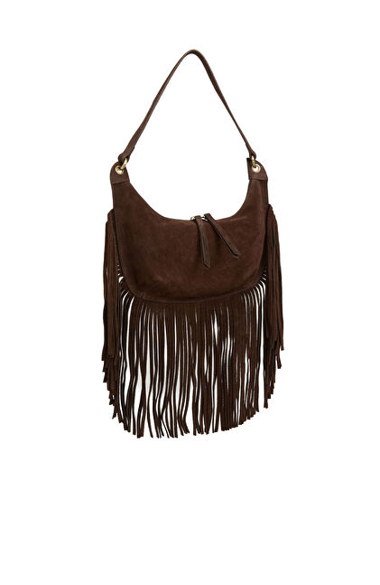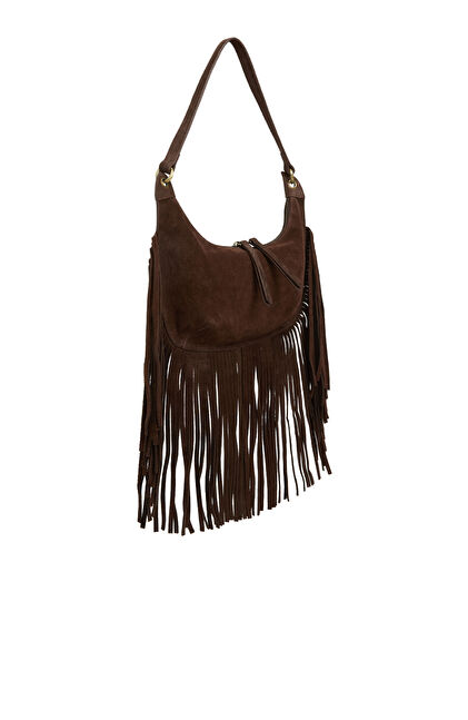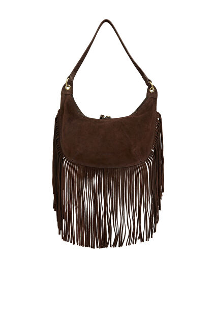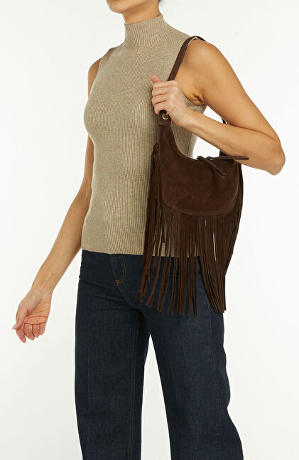 Kahverengi Püsküllü Kadın Süet Çanta