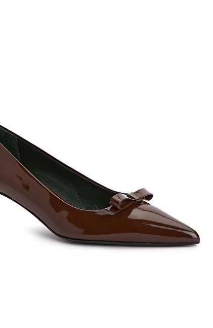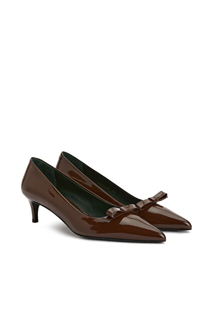 Kahverengi Rugan Deri Topuklu Ayakkabı