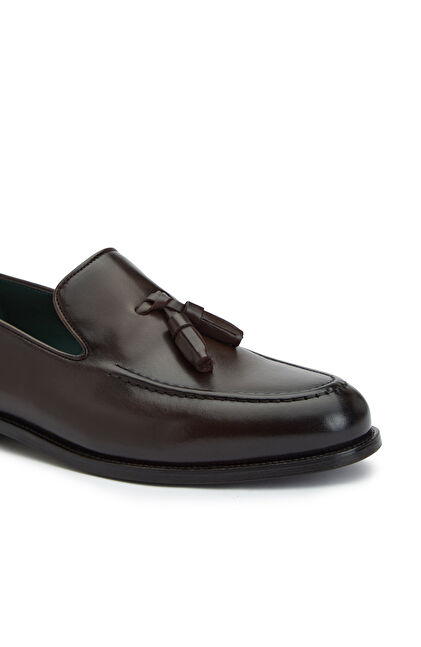 Kahverengi Saraç Detaylı Erkek Deri Loafer