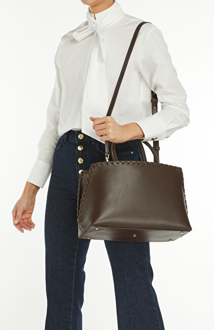 Kahverengi Saraç Detaylı Kadın Deri Çanta