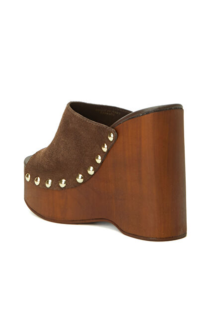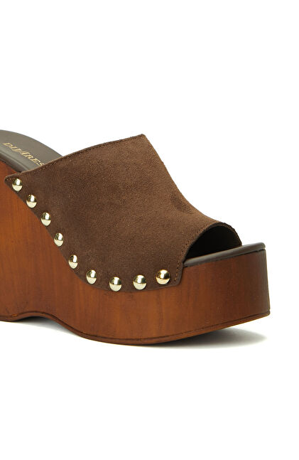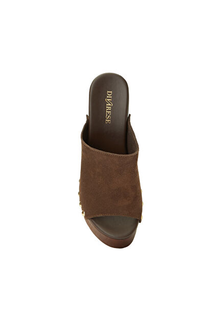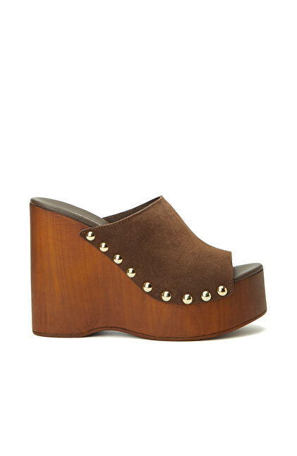 Kahverengi Yüksek Ökçeli Kadın Süet Terlik