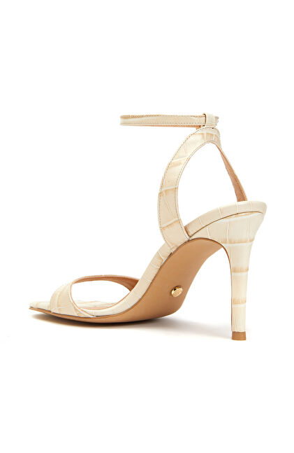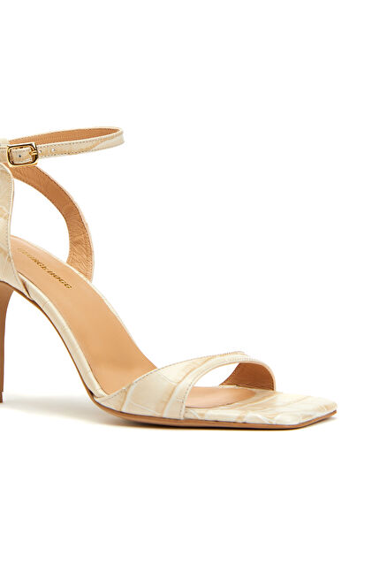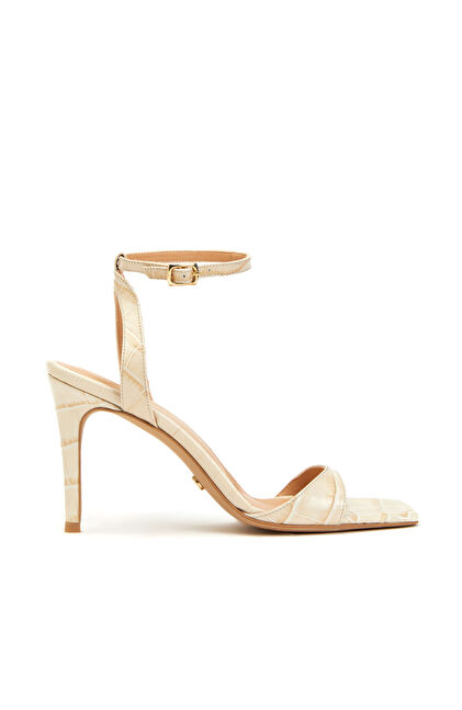Kemik Kroko Desenli Kadın Deri Sandalet