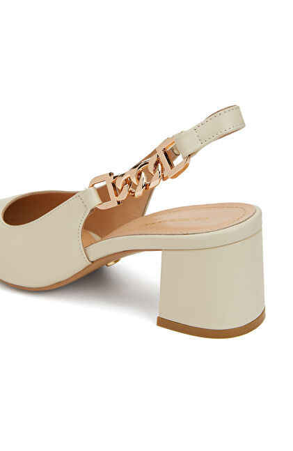 Kırık Beyaz Kadın Deri Ayakkabı