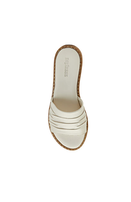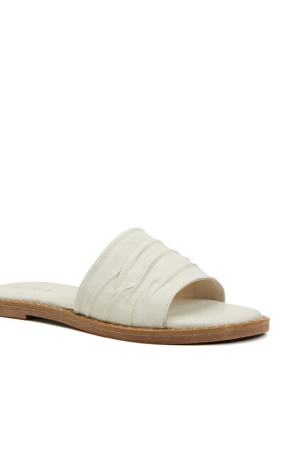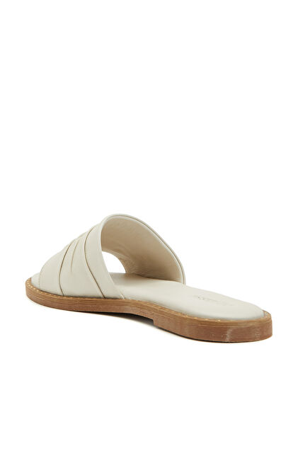 Kırık Beyaz Kadın Deri Terlik
