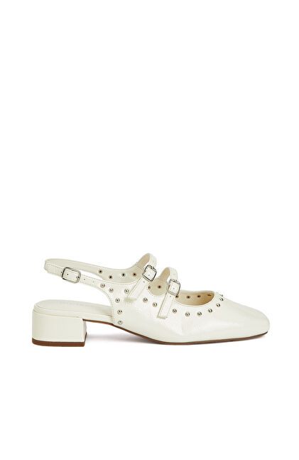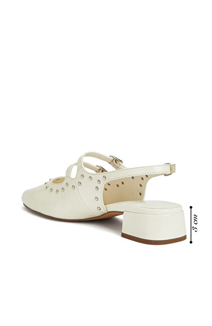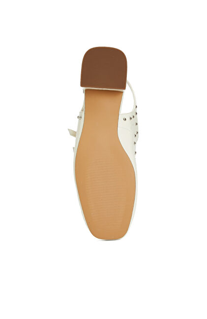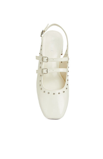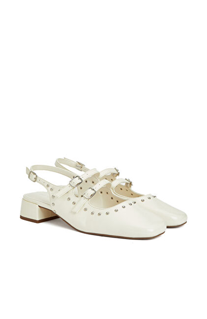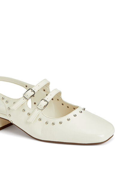 Kırık Beyaz Kadın Taşlı Mary Jane Babet