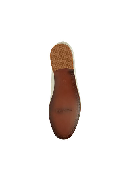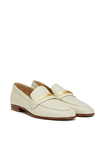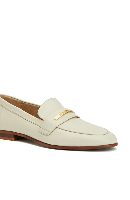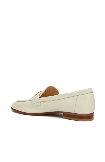 Kırık Beyaz Kadın Yuvarlak Burun Deri Loafer