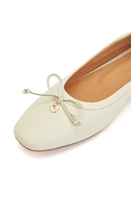 Kırık Beyaz Lastik Detaylı Deri Babet