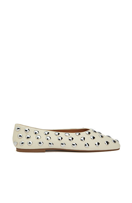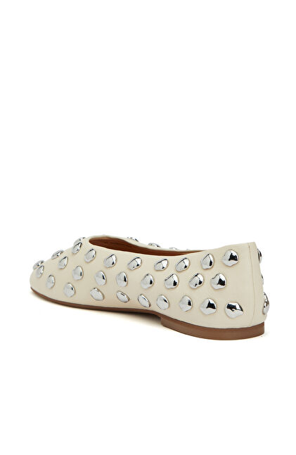 DIVARESE SMART Kırık Beyaz Taşlı Deri Babet