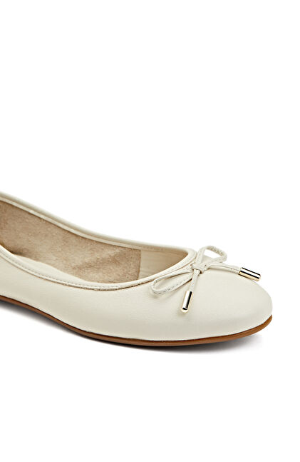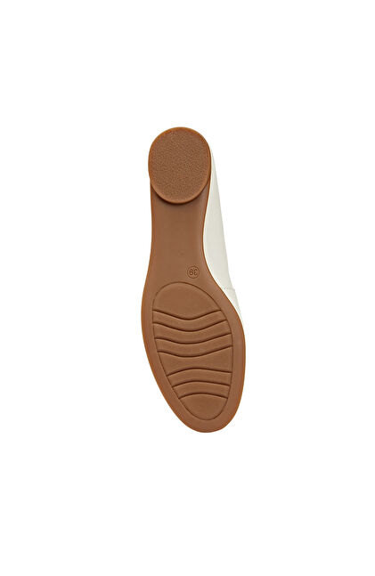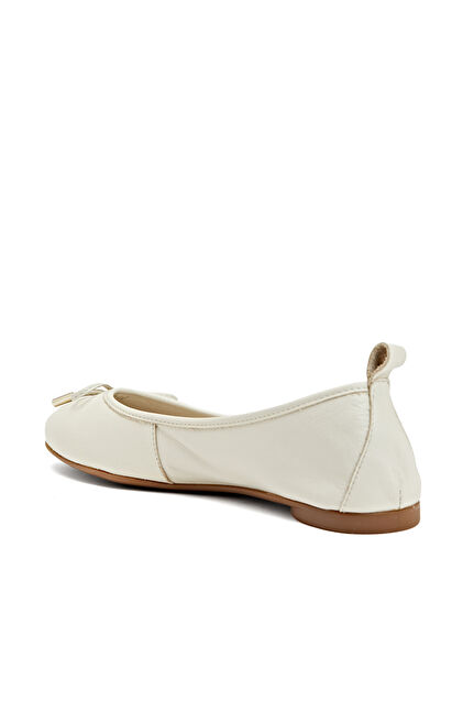 Kırık Beyaz Yumuşak Deri Kadın Babet