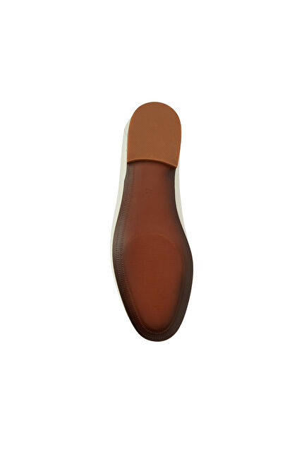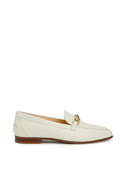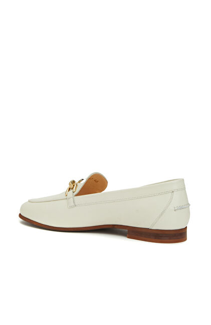 Kırık Beyaz Zincir Detaylı Kadın Deri Loafer