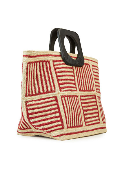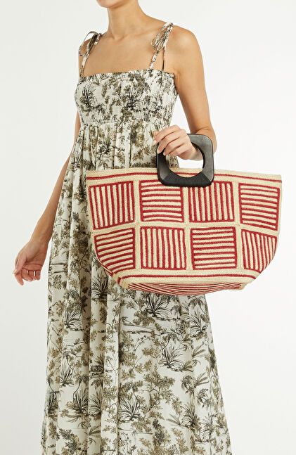Kırmızı Kadın Hasır Çanta
