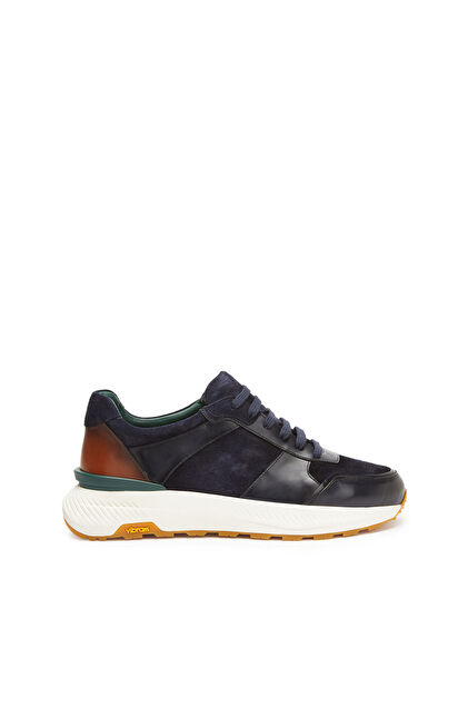 Lacivert Vibram Taban Detaylı Erkek Deri Sneaker