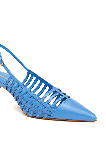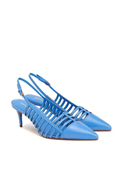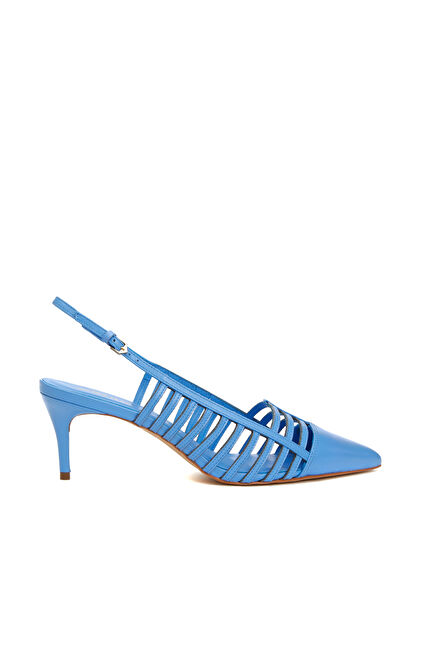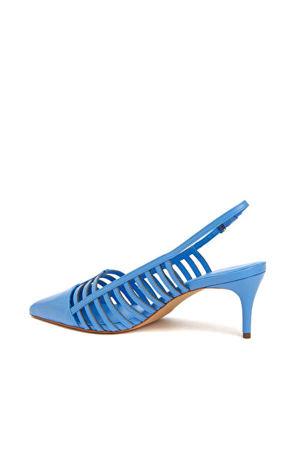 Mavi Deri Topuklu Ayakkabı