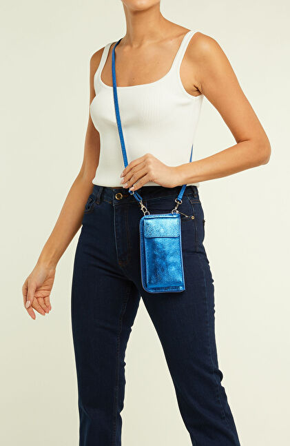 Mavi Kadın Deri Askılı Çapraz Çanta