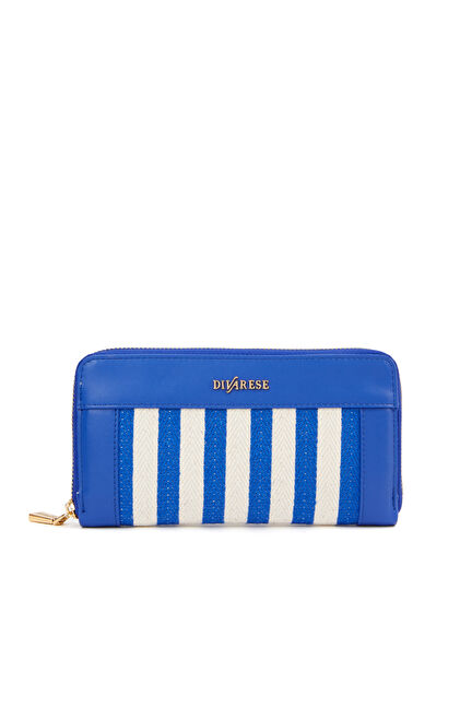 Fermuar Kapatmalı; Logo Detaylı Çizgili Portföy; 1 İç Cepli; 12 Kart Bölmeli