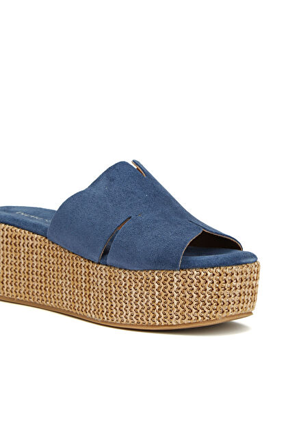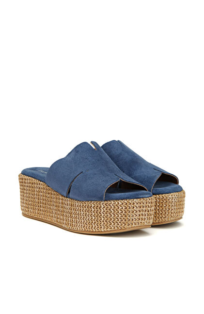 Mavi Süet Dolgu Topuk Kadın Terlik