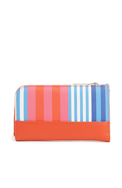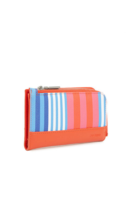 Çizgi Desenli; Fermuar Kapatmalı Cüzdan; Çıtçıtlı; 8 Adet Kart Bölmeli; 14x8x1 cm