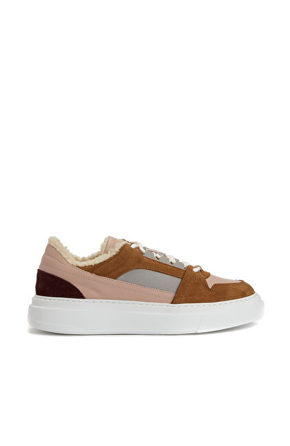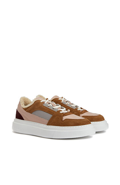 Pudra Rengi Kahverengi Kadın Deri Sneaker