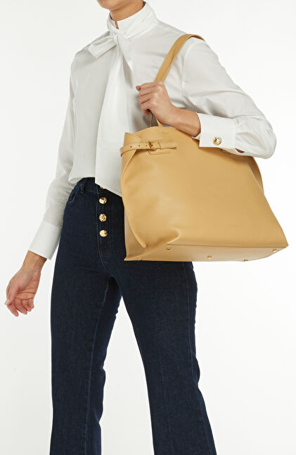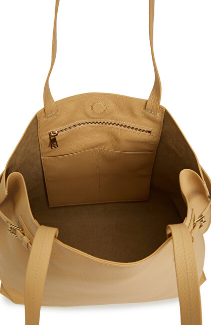 Sarı Kadın Deri Alışveriş Çantası