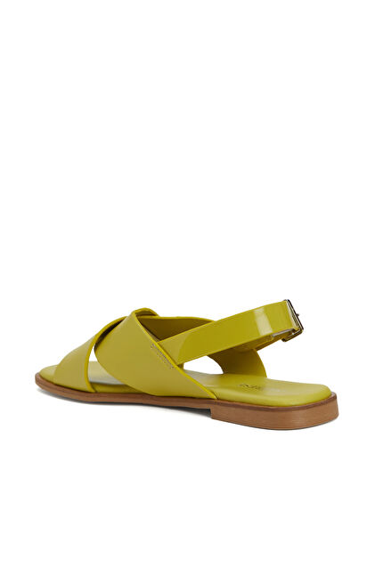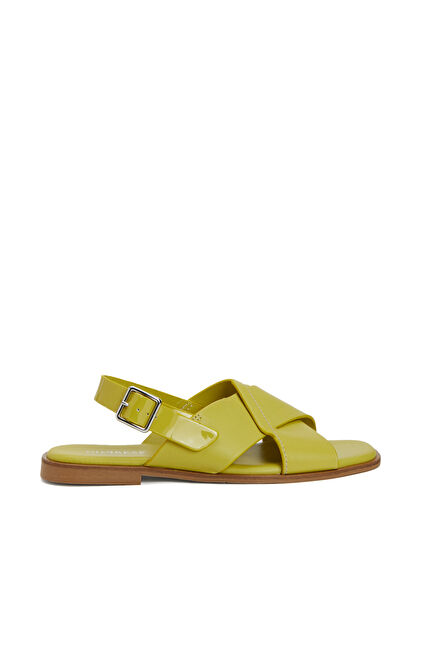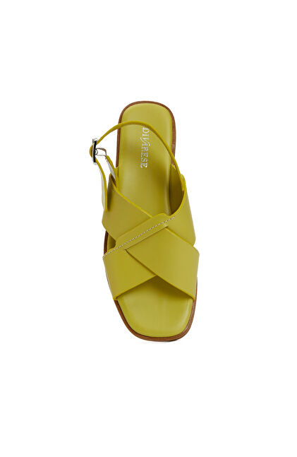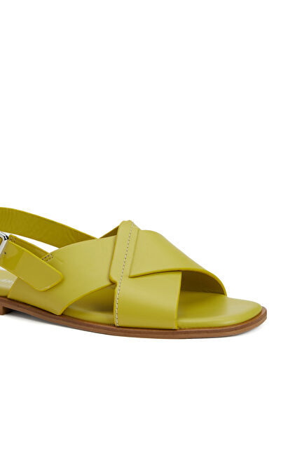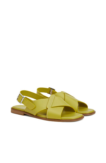 Sarı Kadın Deri Sandalet