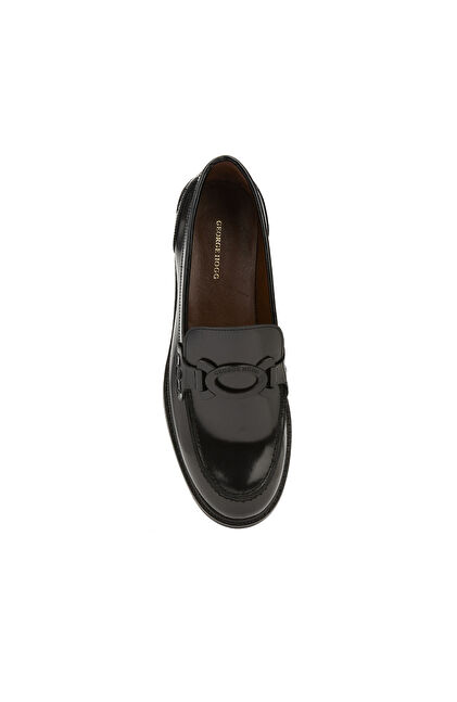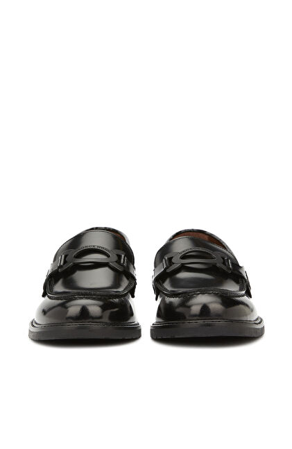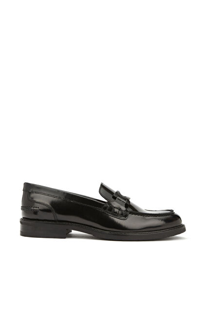 Siyah Aksesuar Detaylı Kadın Deri Loafer