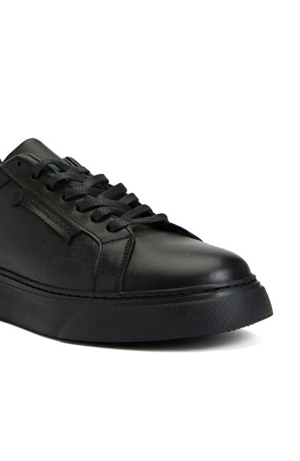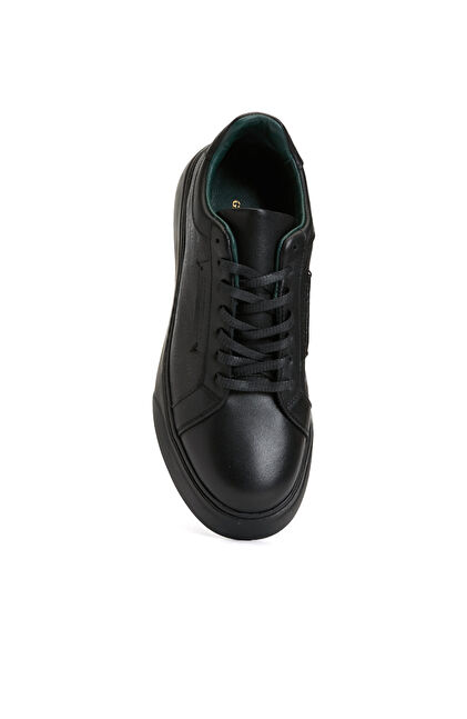 Siyah Bağcıklı Kadın Deri Sneaker