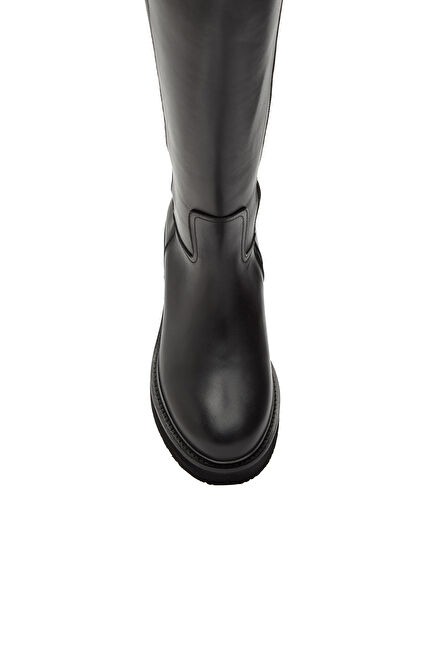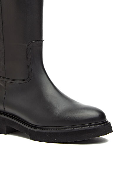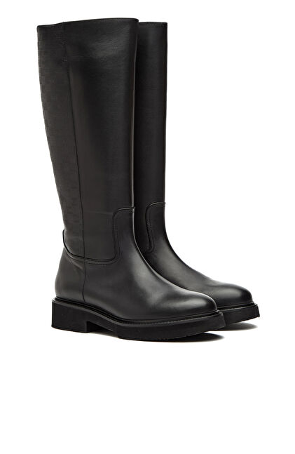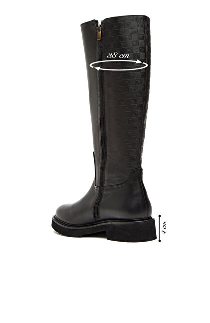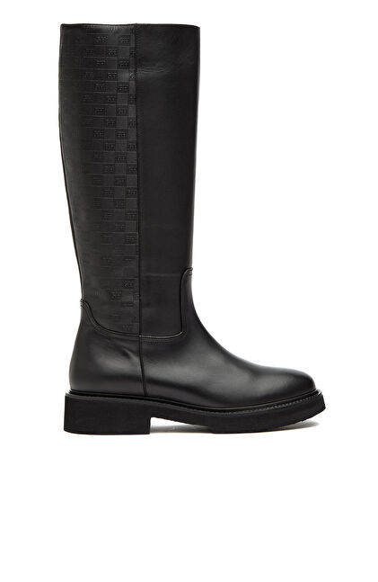 Siyah Baskılı Kadın Deri Çizme