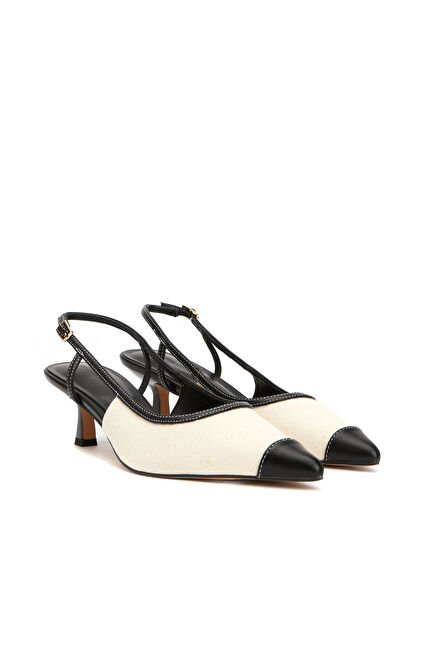 Siyah Bej Topuklu Ayakkabı