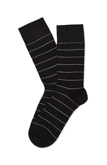 Siyah Çizgili Erkek Bambu Soket Çorap