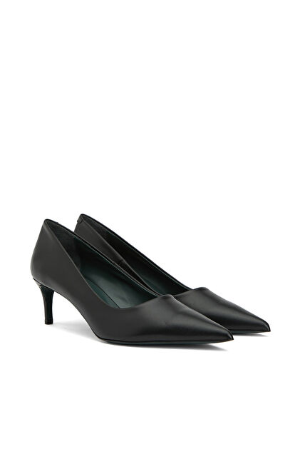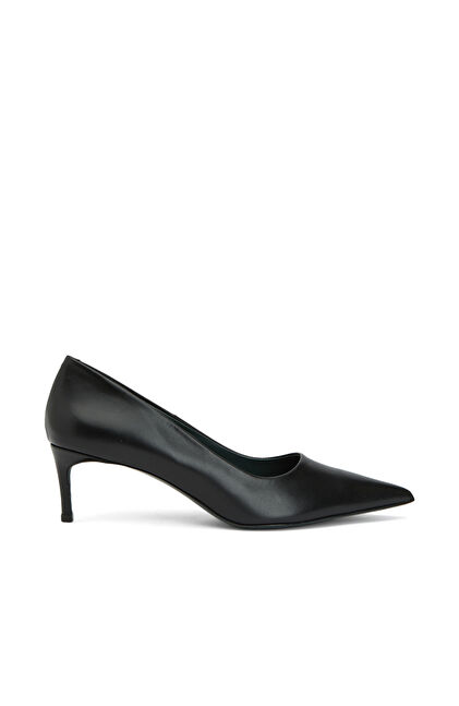 Sivri Burun; Enjeksiyonlu Kösele Tabanlı; Deri Stiletto; Orta Ökçe: 5,5 cm;Tam Kalıp,