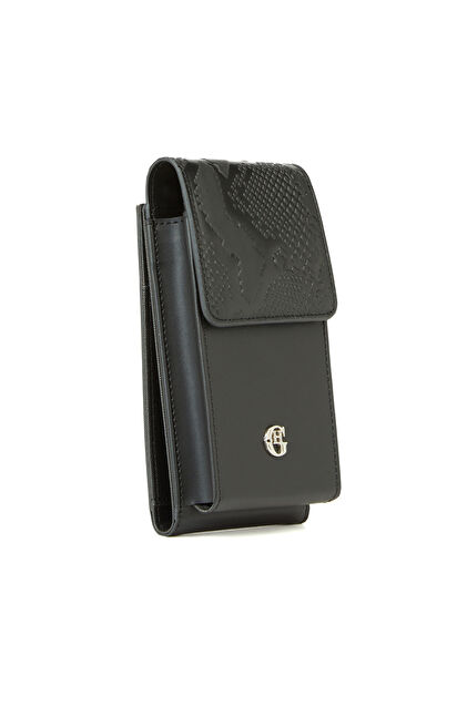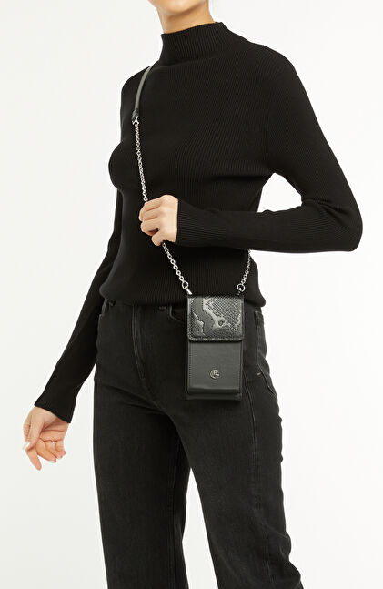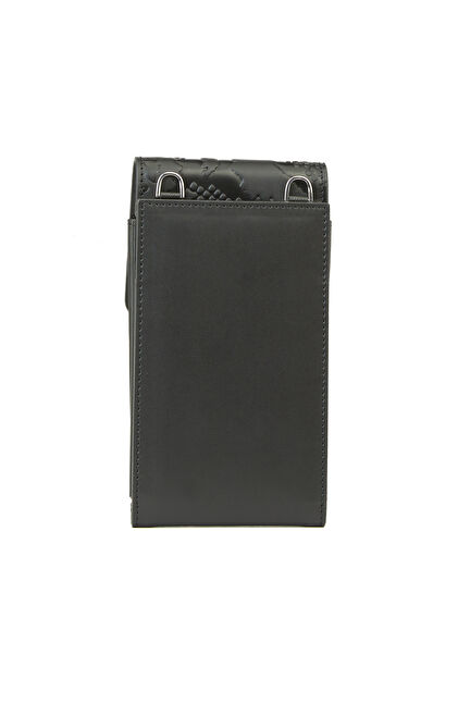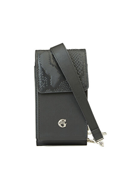 Siyah Deri Karışımlı Kadın Postacı Çantası