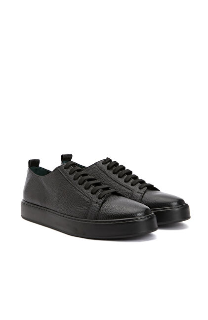 Siyah Desenli Erkek Deri Sneaker