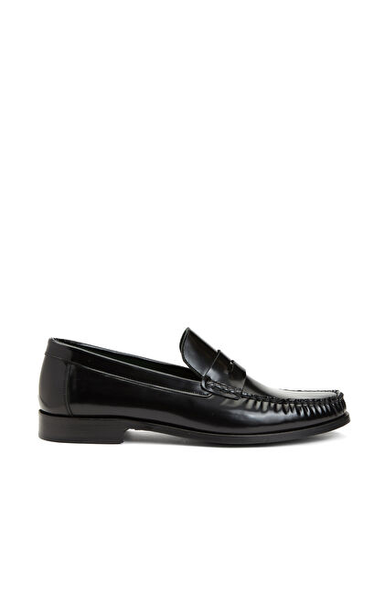 Siyah Dikiş Detaylı Erkek Deri Loafer