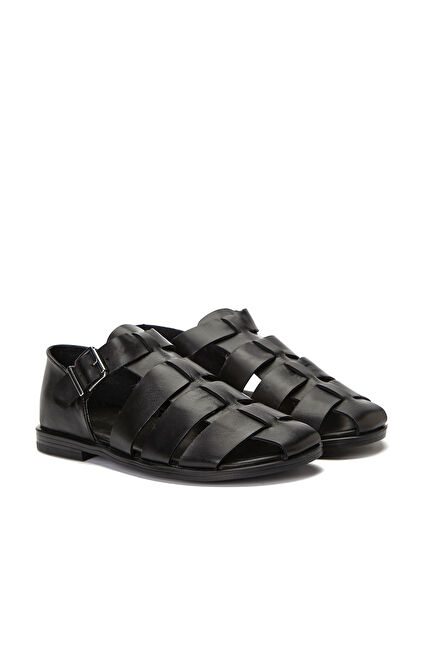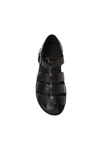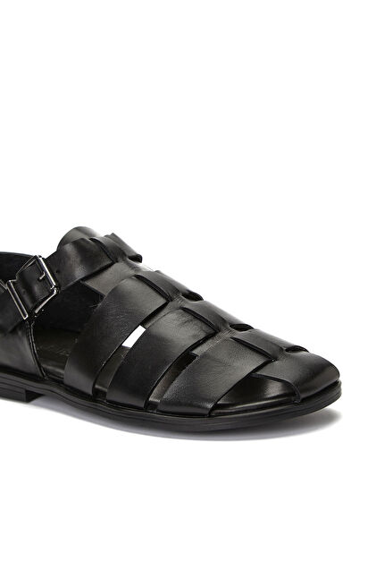 Siyah Erkek Günlük Rahat Deri Sandalet