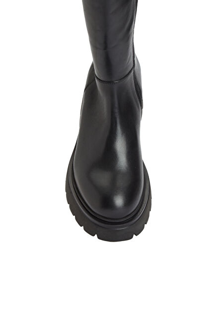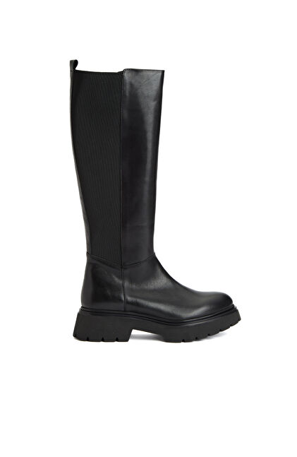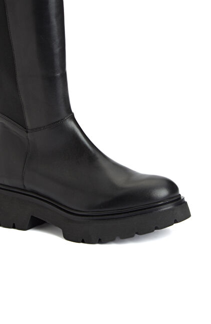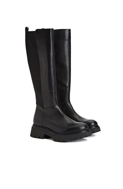 Siyah Fermuarlı Kadın Deri Çizme