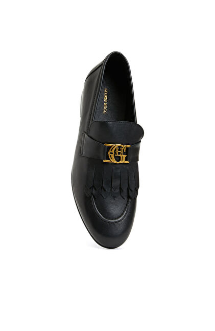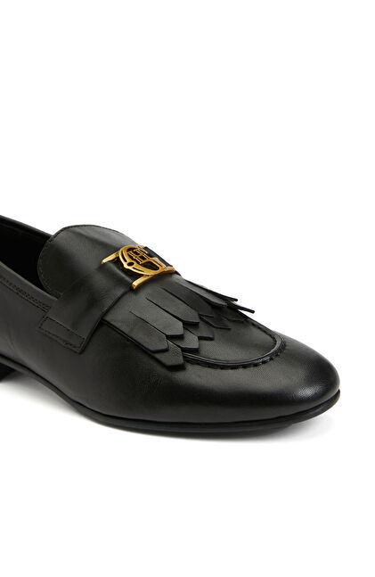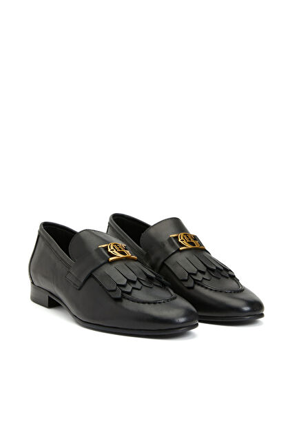 Siyah Kadın Bağcıklı Deri Loafer