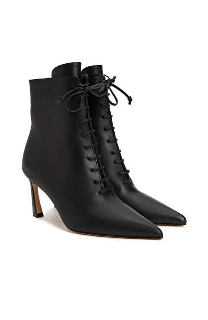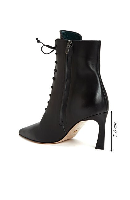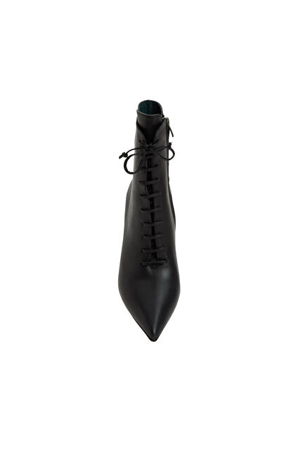 Siyah Kadın Bağcıklı Topuklu Deri Bot