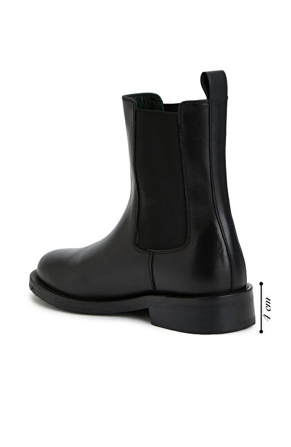 Bağcıksız; Lastikli; Deri Bot; Alçak Ökçe; Kauçuk Tabanlı; Topuk: 4 cm,