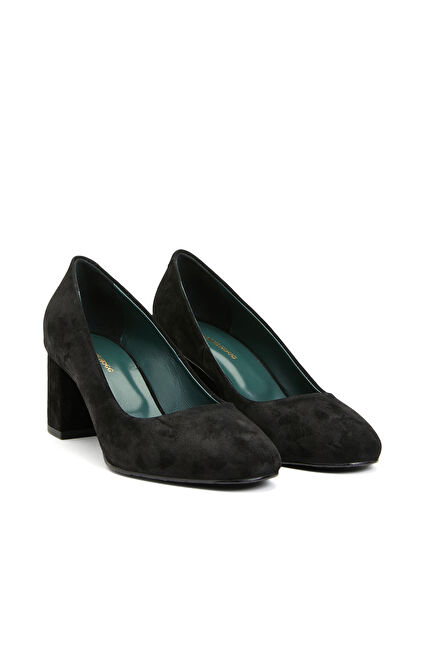 Siyah Kadın Deri Kalın Topuklu Ayakkabı