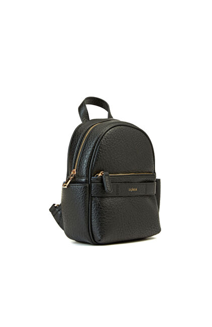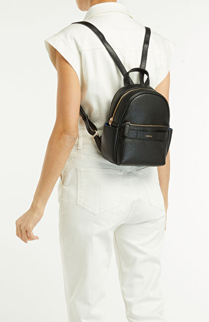 Siyah Kadın Deri Mini Sırt Çantası