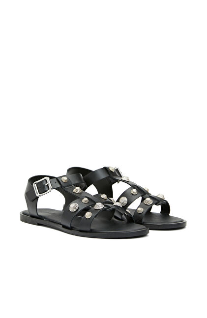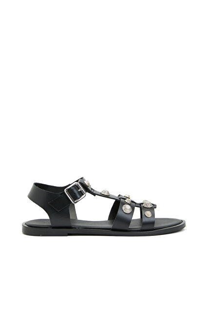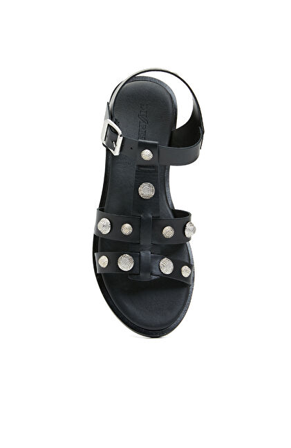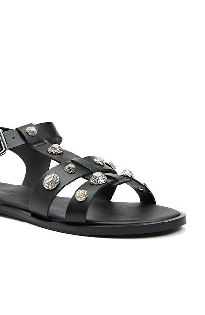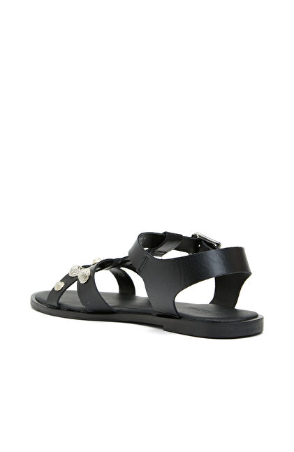 Siyah Kadın Deri Sandalet